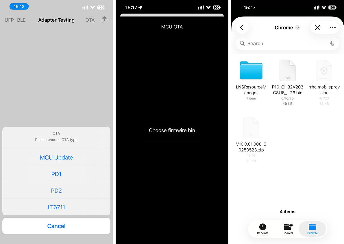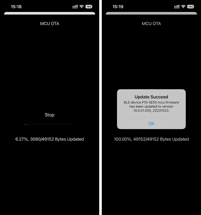 Select and Install Firmware: Tap "OTA" in the top-right corner and select MCU. When prompted, choose the unzipped firmware file you downloaded earlier.